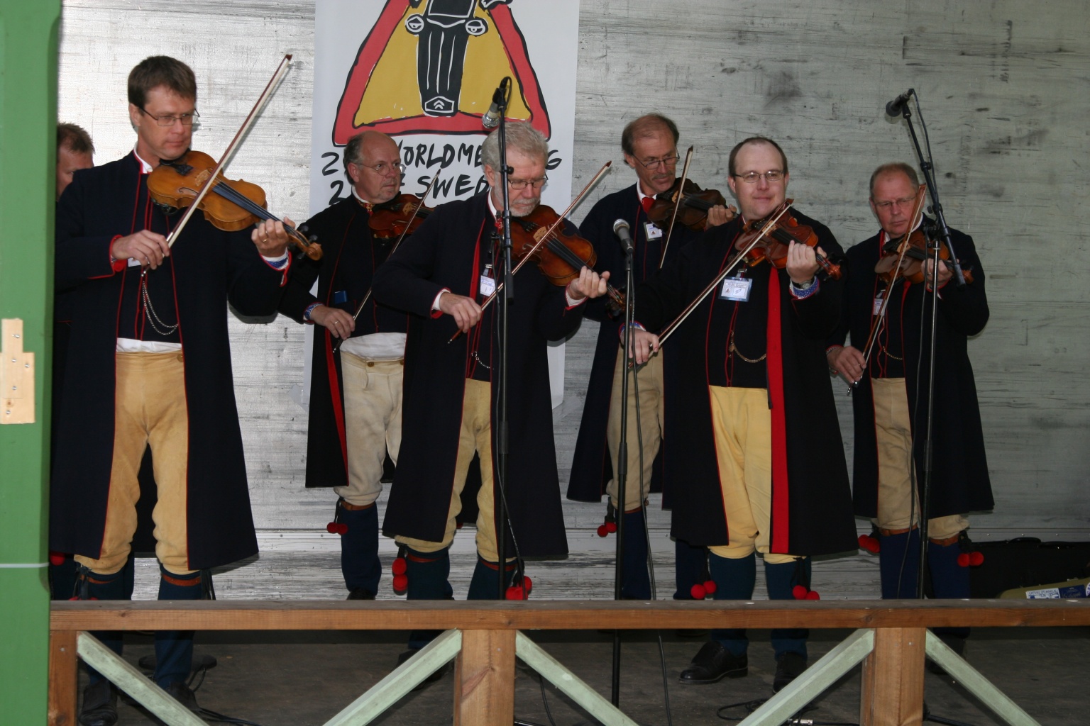 Nachmittags habe ich mich zum Pavillion begeben. Hier wurden historische, typisch schwedische Musikinstrumente von Björn Oledal vorgeführt. Die Schlüsselgeige, die er selbst gebaut hat, erwies sich als besonders diffiziles Instrument. Bis alle Saiten in Einklang gebracht sind, vergeht gut und gerne eine Stunde. Wie formulierte Björn es treffend: 'Ich spiele dieses Instrument seit 30 Jahren. Das bedeutet, gespielt habe ich 20 Jahre und 10 Jahre gingen für's Stimmen drauf.' Anschließend spielte die Formation 'Oj pojkar' skandinavische Volkslieder.